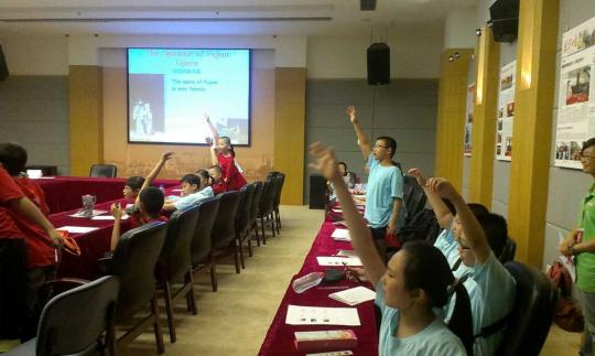 今天是第一节英语讲解课堂,因此志愿者老师们在经过详细备课后,最后决定由浅入深,为小朋友设置了情景教学,教导他们成为了小导游以后该如何用英语从问候语、博物院的总体概况、各个具体展厅介绍以及结束语几个不同方面来向外国友人展示福建博物院。志愿者老师们的语言诙谐幽默、简明易懂、妙趣横生,小朋友们更是听得津津有味,纷纷举手发言,课堂气氛十分活跃。此外,志愿者们也设置了许多抢答环节以及抢答成功可获得的小礼品来调动课堂气氛。小朋友们学有所得,又获得奖励,更是踊跃作答了。一堂课结束,小朋友们收获颇丰,一些小朋友更是兴致勃勃,下课后仍然相互学习交流着。